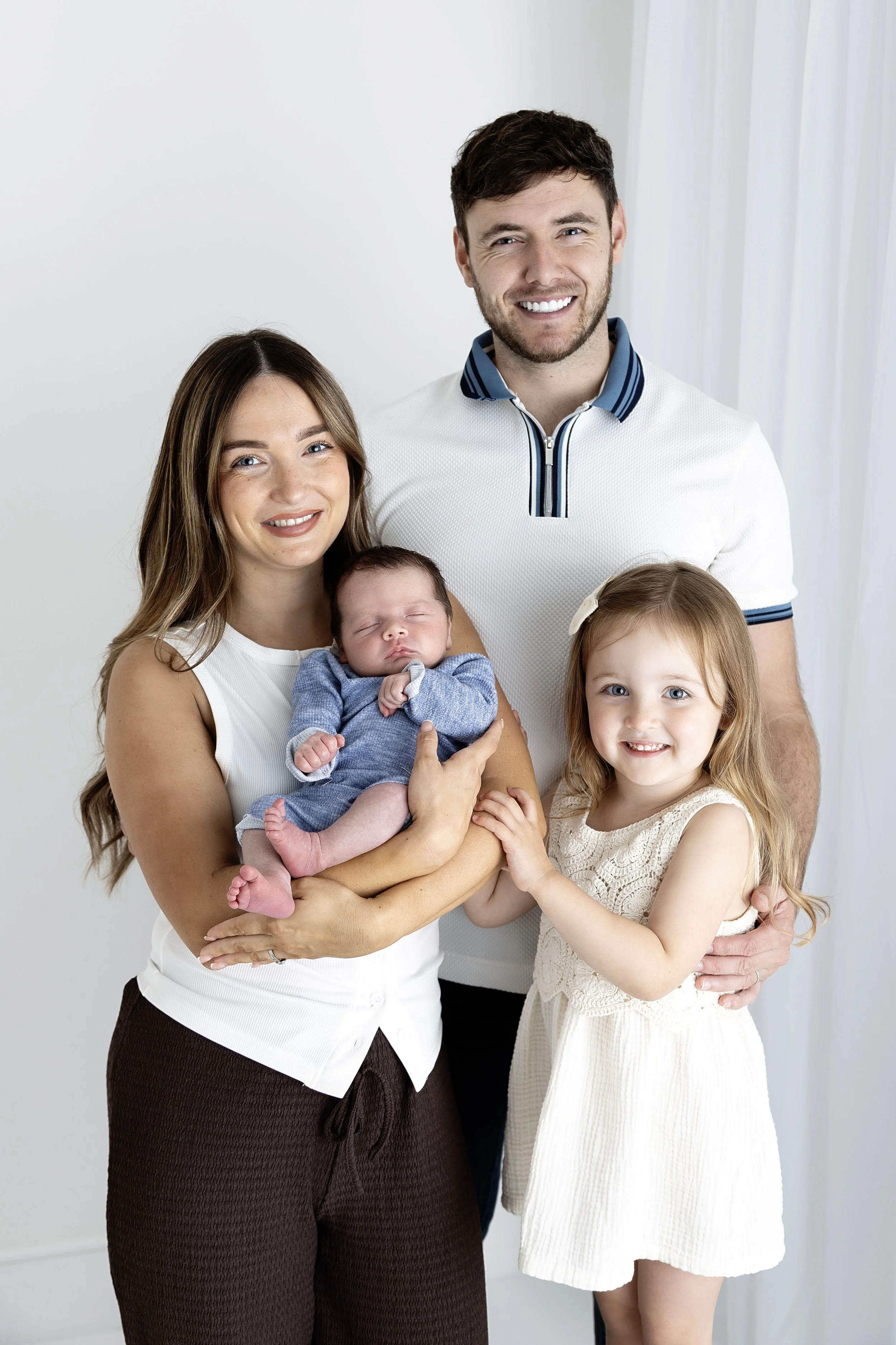 You’ll receive 4 images of your baby and 1 family photograph, (or 5 images of baby if you don’t want a family photo) all delivered within a few days of your session.